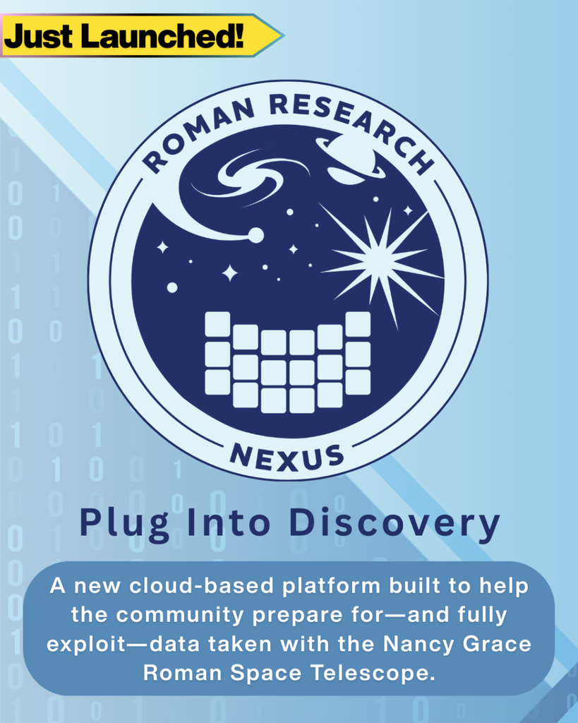 The Roman Space Telescope Mission is pleased to announce that the Roman Research Nexus is now available for use! The Nexus provides the science community with a cloud-based science platform to efficiently access, explore, and analyze Roman’s large volume of data. Check out the Nexus now to explore existing simulated datasets, use pre-installed simulation tools and pedagogical notebooks, and engage in real-time collaboration. All you need is a myST account to login and get started.