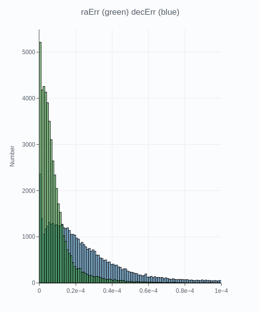 I do not expect raErr and decErr to be identical, but the difference increasing with declination and the fact that