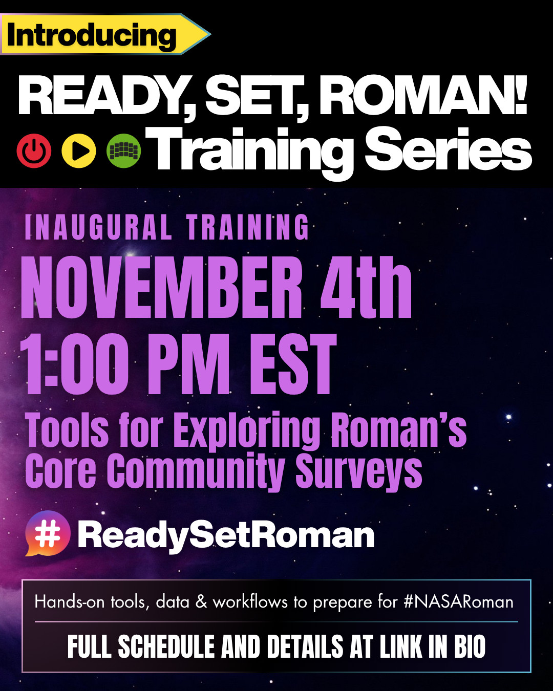 The Roman Science Centers at STScI and IPAC are excited to launch the Ready, Set, Roman! Training Series —a new, hands-on set of webinars designed to prepare the community for the Nancy Grace Roman Space Telescope.