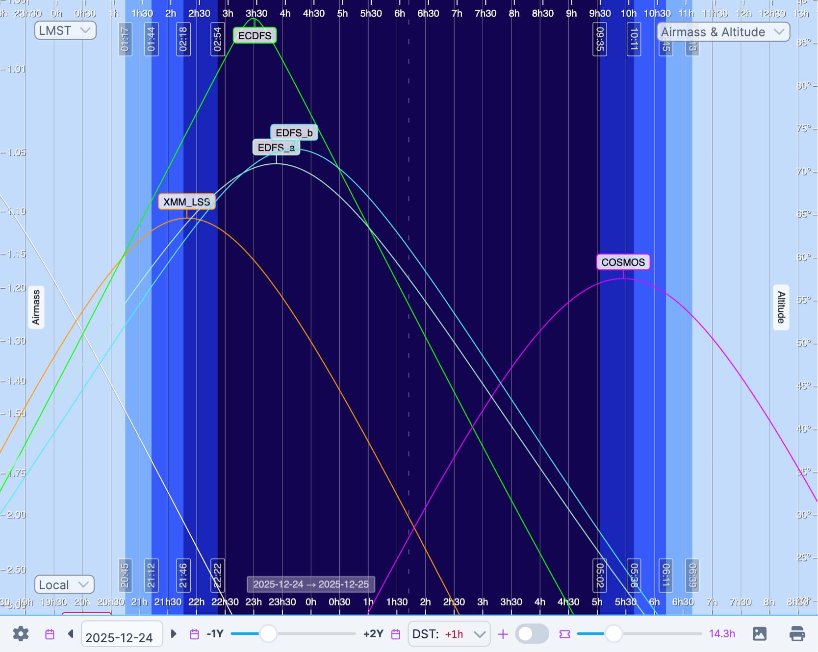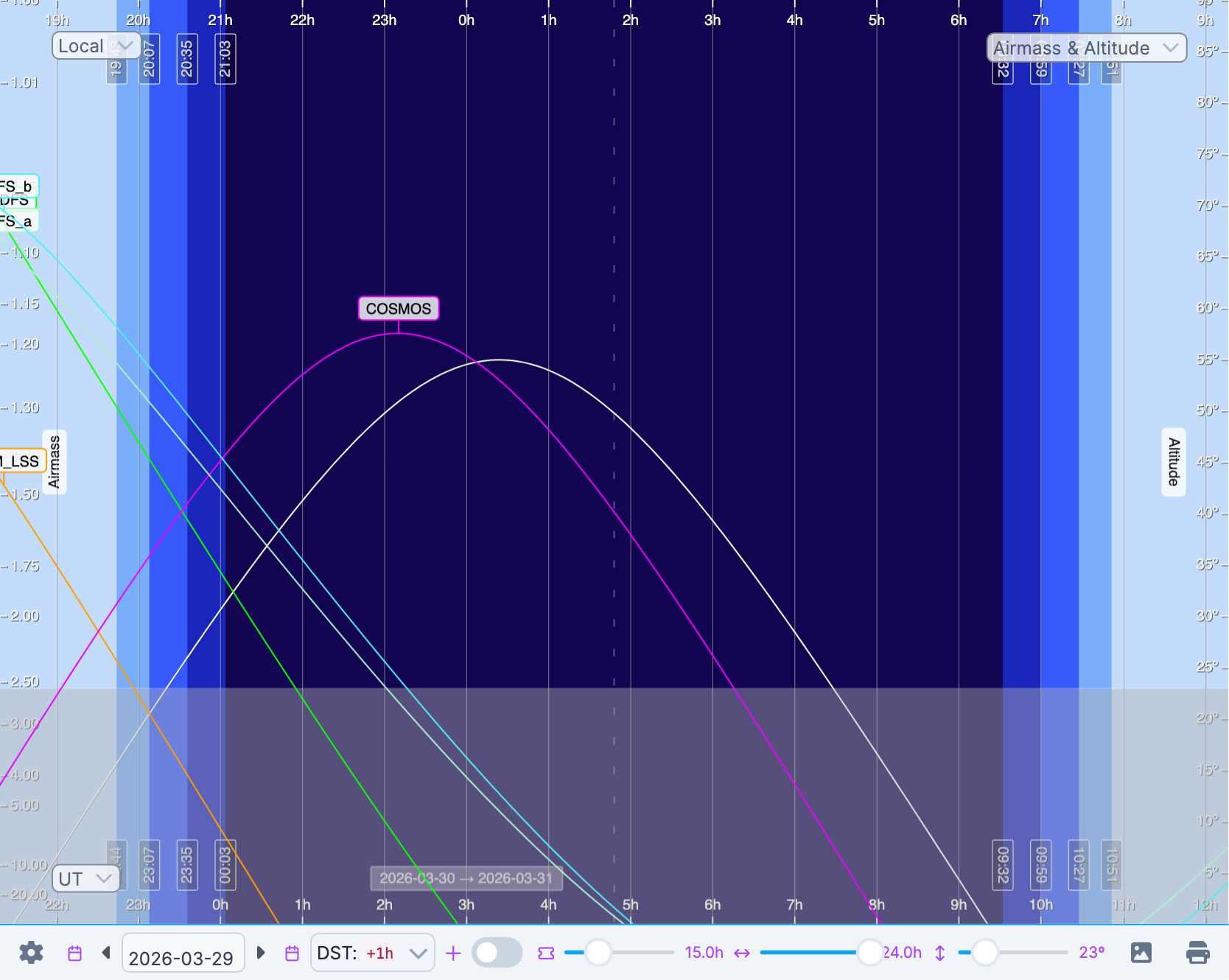 @MelissaGraham It’s great to hear that a tool is in the works. Are you saying there’s no templates available of the COSMOS field? Because that’s really the only DDF visible moving forward past the end of March. Here’s the az-airmass plot on-sky at the start of the night in mid-April.