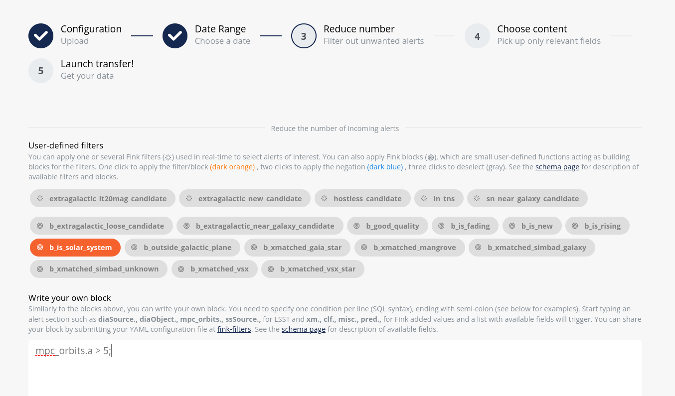 I also looked at Fink which already provides excellent SSO information provided you have a name/designation to query. Is there anyway to make use of the Fink API, in particular /api/v1/tags, to query for objects tagged as SSO (i.e. ssObjectId is not null?). All I could find on the existing Fink filters is in this repo but there does not appear to be anything for SSOs.